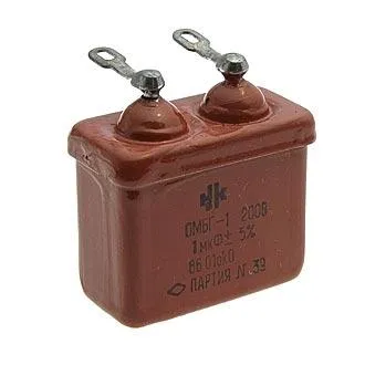 ОМБГ-1 200В 1мкФ конденсатор металлобумажный высоковольтный импульсные, выпускается в герметичном прямоугольном корпусе с лепестковыми выводами, предназначен для работы в цепях постоянного,  переменного и пульсирующего токов,конденсатор относится к разделу пассивных электронных компонентов.