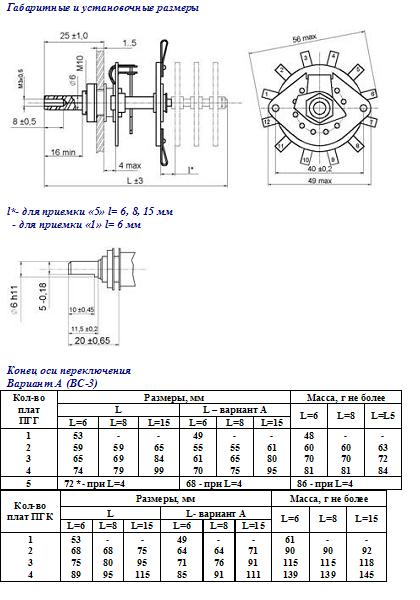 Описание переключателя галетного ПГК-6П1Н