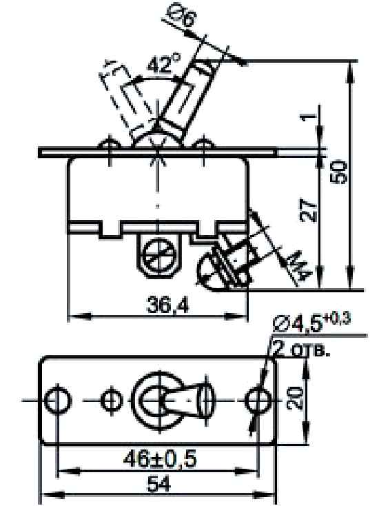 ПП-45МК переключатель перекидной применяется для коммутации цепи сигнализации и управления постоянного тока с напряжением 27В. Тип механизма переключения – рычажный. Подключение проводов – при помощи винтов с использованием кольцевых или вилочных наконечников.