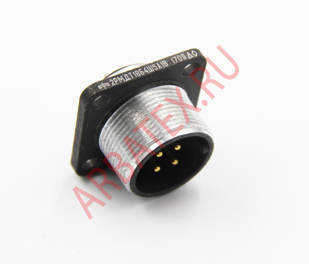 Также 2РМДТ18Б4Ш5А1В относят в группу цилиндрических, низкочастотных разъемов которые выполнены из специального сплава алюминия АЛ-11. Изолятор на который посажены контакты разъема выполнен из пресс материала АГ-4.Покрытие контактов у данных разъемов - судя по последней букве "А" в маркировке - золото.